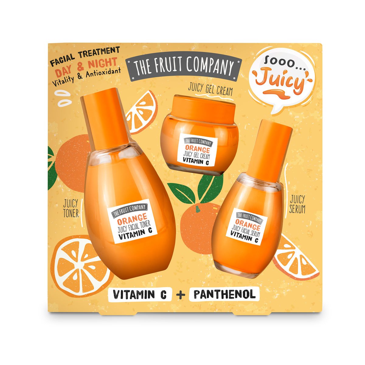 SET TRATAMIENTO FACIAL JUICY SKIN NARANJA VITAMINA C TÓNICO + CREMA + SERUM